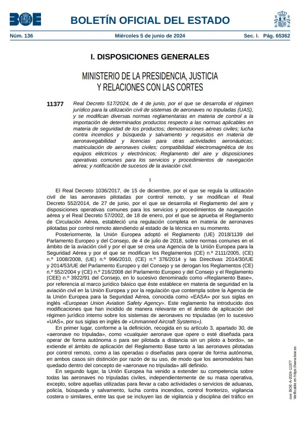 En DRONEUROPA hemos analizado el nuevo Real Decreto 517/2024